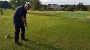 Anyway, the course was in very good condition with some stunning views – when it wasn’t raining hard. The rough was very rough in quite a few places, but did not appear to disturb most players. Although special mention must go to Andrew Bramwell who had 5 provisional balls, only to have Trevor Chapman find all the original drives. Shame he lost two of the provisional balls! On hole 12 Roy went for the green only to find he had aimed at a marker post for a different hole. He then went on to bounce one on the bridge on the 14th.